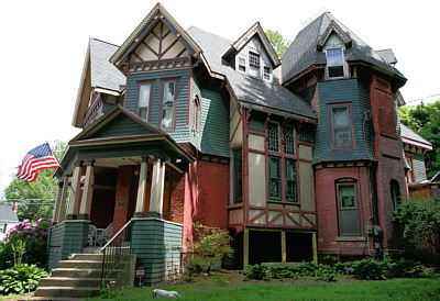 The house is a magnificent example of Queen Anne style architecture. As described in the National Register application: "The design is a complex amalgamation of forms, materials and textures. The brick and stone building is irregular in form and massing, featuring multiple cross gables and dormers, decorative vergeboards, projecting bays of various shapes and sizes, varied window types and groupings, and a tower with a decorative multi-stage chimney incorporating patterned and molded bricks." In other words, this is one gorgeous house.