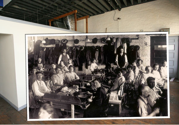 Composite image: vintage photo ca. 1910 and current photo taken from similar spot, 4th floor.