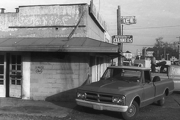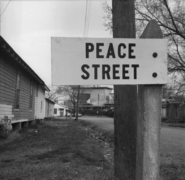 | These photos were taken in Southern Mississippi during the late 1960's. Prosperity and Peace Streets are located in Jackson, Mississippi. Other photos were shot in Hattiesburg, Forrest County, home of the University of Southern Mississippi. The college mascot has since been changed, but at that time was "General Nat", a.k.a. Nathaniel Bedford Forrest - known as a slave trader, confederate army general, founder and early leader of the Ku Klux Klan and namesake of Forrest Gump. The Forrest County Action Committee, Mobile Street, Hattiesburg, was very active in the civil rights movement in the 60's, and appears as a safe haven for author John Howard Griffin in his 1961 book Black Like Me. |
