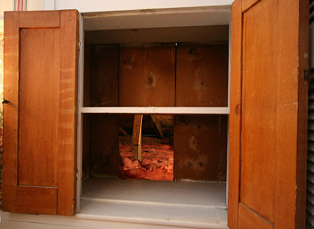 Measuring roughly ten by twenty feet, and only four feet high, the secret room was accessed through a small hidden panel located in the back of a closet in an upstairs bedroom. The family's oral history would seem to be accurate. Built long before prohibition, predating the existence of electrical wires and attic insulation, Beukema and County Historian Smith agree that there would be no reason for the trap door other than to provide access to a hiding place.