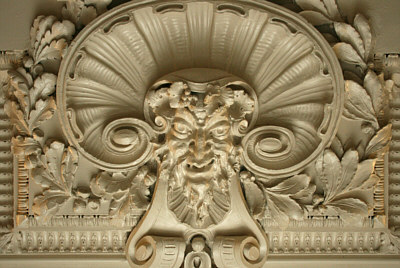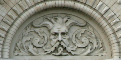 Several examples can be found on a walk around town. A Green Man can be seen at the Palmer Building on Main Street, several appear on the front of the RBS Building on State Street, exceptionally ornate examples look down from the ceiling of the original lobby in the former Press Building on Chenango Street, three adorn the Brunnur Building on gorgeous Washington Street. Closely related Green Lions can be found on the Security Mutual building and one of the galleries on State Street.