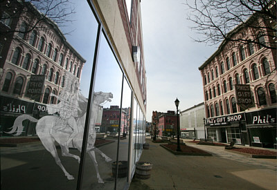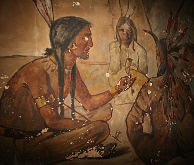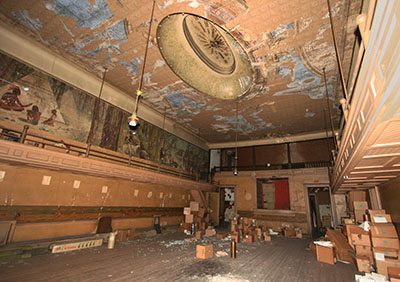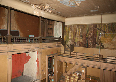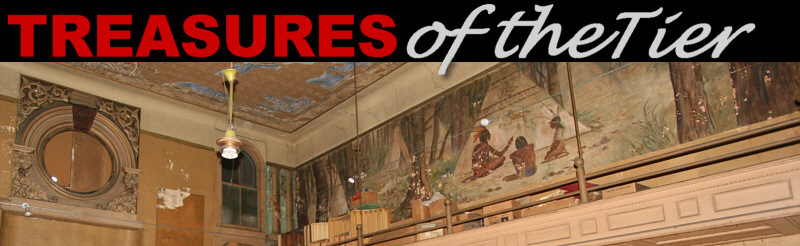 Truth be known, it wasn't really THAT many moons ago, their stomping ground was the Phil's Gift Shop building, and just to set the record straight, these were definitely NOT Native Americans! In the early 1900's, 153-155 Washington Street was headquarters to a fraternal society, the Improved Order of Red Men. A quick check of IORM's original constitution reveals the irony - that in fact, only "white males of good moral character" were eligible to be "Red Men." Originally they were known as "Sons of Liberty," a secret society of colonists modeled after Native American tribes, that worked in resistance to the English Crown. As the story goes, in 1773 while British ships were moored off the coast of Boston, the Sons of Liberty, dressed as Native Americans, threw the famous Boston Tea Party. After the American Revolution the name was changed to "Order of Red Men" and membership steadily increased. By 1920 the organization had lodges in 46 states and would soon hit its peak with half a million members. Over the years its members included George Washington, Thomas Jefferson, Franklin Roosevelt and constitution notwithstanding, even Richard Nixon. Today, although greatly reduced in size, the IORM still exists. As stated on its website, the organization "is pledged to the high ideals of Freedom, Friendship and Charity." During the late 1800's Washington Street was lined with impressive brick buildings. On one side stood the magnificent Bennett Hotel, and across the street was a group of buildings known as the Bennett Block where a dry-goods store known as "Fowler, Dick and Walker," got its start. In 1900 the store relocated to Court Street and would eventually be known as "Fowler's." After the move a variety of businesses occupied the building at 153-155 Washington Street. In 1909 it held a real estate office, clothing store, jeweler, and music school. It was that year that Wamsutta Tribe, no. 37 of the Improved Order of Red Men moved in, taking the entire fourth floor for its lodge. Membership grew and within ten years the Washington Street lodge was hosting six different Red Men tribes including their women's auxiliary, the "Degree of Pocahantas, Minnehaha Council." Meetings were scheduled every night of the week, until finally in 1922, the Red Men moved out. In IORM terms, "the council fire was quenched," and the building entered its next phase. Over the years it was home to a coffee den, barber shop, florist, and oyster bar. Finally, in 1942, Phil's Gift Shop took up residence and would remain the sole tenant for 65 years. Merchandise filled the first three floors, but on the fourth floor, the former Red Men lodge was used only for storage. Recently Phil's Gift Shop relocated and today the building on Washington Street stands empty and for sale. Except for an "urban renewed" ground floor façade, it looks as it did 125 years ago. Inside, rooms are filled with empty glass display cases and idle cash registers. But stepping from the staircase onto the fourth floor is taking a step back in time, where a first glance into the abandoned Red Men lodge takes your breath away. Looking past the clutter of cardboard boxes, the room appears untouched since it was abandoned in 1922. A massive dome and skylight are overhead and a stage is located at one end of the room. Shallow balconies run down each side of the lodge where rows of "white-only" Red Men dressed in full regalia once witnessed ritual ceremonies. Then there is the artwork. Like those they were imitating, Binghamton's Red Men left their mark on these walls. Large murals depicting wilderness scenes and Native Americans on horseback cover the plaster surfaces. For nearly a century this secret theater and its artwork have been hidden from public view. Just outside there have been many changes - community activity flourished then shifted away from the city, buildings have come and gone, and even the street itself was removed. Twenty years ago, in an effort to revitalize the downtown area, a retail shopping mall was built on Washington Street… literally. Known as MetroCenter, it replaced a block-long section of the street. Unfortunately, as shoppers were increasingly drawn away from the city, MetroCenter as a retail mall would enjoy short-lived success. As the saying goes, that was then. Now exciting things are happening downtown. New businesses, arts venues and educational centers are opening, empty buildings are being repaired and reused, students are moving downtown and loft apartments are filling with new residents. In the center of town, the area separating Binghamton's two Washington Streets is active. No longer a retail mall, "MetroCenter is doing great," says Michael Libous, who has operated a salon in the mall for nine years. "Currently all but two spaces in the mall are occupied by businesses," he said, adding "and they're all under long term lease." Out front the old Red Men lodge now looks over a pedestrian mall, lined on one side with fine examples of commercial Victorian Gothic architecture, and on the other side, images of those buildings reflect in the glass-front façade of a modern business center. Meanwhile, up on the fourth floor where the Red Men once held council, there is hidden treasure to be found. Hopefully the building will be discovered, revitalized, and once again play a significant role in the development of downtown Binghamton. That would be a good reflection on our city.