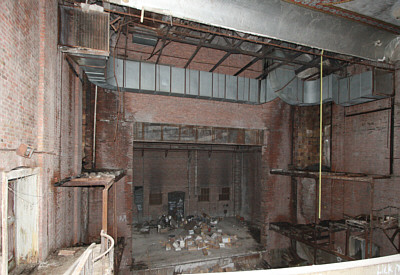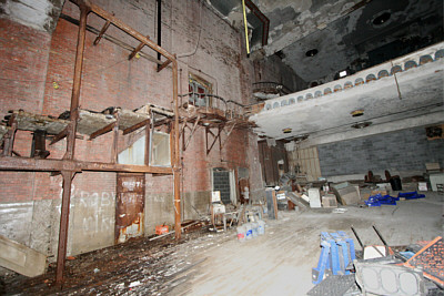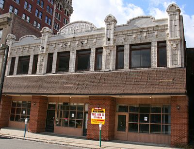 In 1972 the Strand gained national attention after law officers raided the establishment during a premier showing of “Deep Throat.” A few years later the theater closed. Since that time several plans have surfaced for reviving the Strand, including a modern movie complex, an evangelical church, an office complex and a supper club. None of the plans came about, and although the front portion of the building served as a restaurant for several years, the theater has remained sealed off and vacant for over three decades. Today the Strand is dark, cold and empty. Theater seats on the ground level have been removed. A narrow passageway winds through a sea of plastic buckets and metal drums – presumably containing used cooking oil and other waste accumulated from years of restaurant activity. Iron skeletal remains of once-lavish box seats line the theater walls, and high overhead a decorative domed ceiling remains somewhat intact. Barricades over a door to the alley have been pried open. Beer cans, bottles and spray-painted graffiti give evidence of night visitors and urban explorers. Everything is covered with a gray mixture of dust, plaster, pigeon parts and other biological residue. Last July the Strand made front page news. Under the title “Theater Restoration – Stranded no more,” the former executive director of a local nonprofit arts group, the Art Mission and Theatre, announced plans to restore and move into the building. The announcement appears to have been premature. Anna Kovach, current executive director of the organization now says, “we are reassessing what we want to do, whether we want to move or stay where we are.” Recently a sign appeared on the front of the Strand announcing an “absolute real estate auction” to be held November 23. The notice states that the building will be sold to the highest bidder, “regardless of price.” Originally billed as the last word in movie theater design, today the Strand is the last vestige of Binghamton’s original moving picture theaters. For 90 years it has stood testament to the vision of its founder. Hopefully on November 23 a new owner will come forward, with a new vision for this important piece of Binghamton history.
