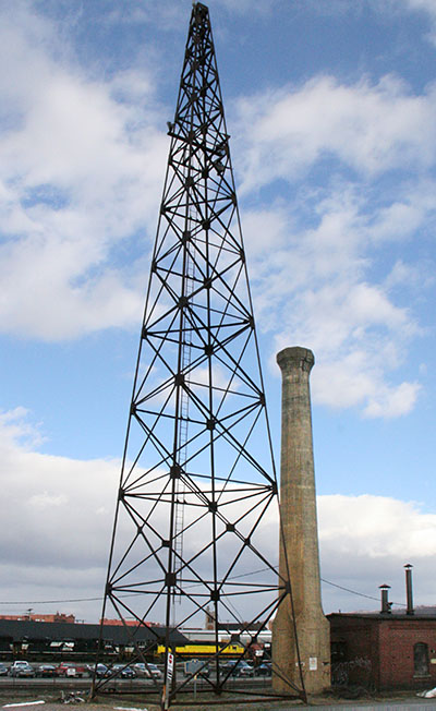 A third station was installed on the “Lackawanna Limited” train, where a horizontal rectangular aerial was mounted 18 inches above each of four cars and connected to each other by slack wires. Each fixed station could transmit and receive over a range of about 100 miles, but due to the hilly terrain and the fact that its antenna was relatively low to the ground, the range of a moving train was less than half that. Marconi’s plan was to have fixed stations spaced at 50 to 80-mile intervals along the railway, ensuring that a train would always be in contact with a tower as it travelled through successive overlapping “cells” of coverage. The cellular concept sounds familiar. In fact today’s wireless mobile phones work by the same principle. After the initial tests, further refinements continued to be made on the Lackawanna Railroad wireless system. Wireless technology evolved rapidly and it soon became clear that the telegraphy system should be converted to wireless telephony, eliminating the need for Morse code and specially trained operators. Early in 1914 Marconi transmitting equipment was replaced by the new more powerful Wallace tuner. At the same time massive towers were erected at Hoboken and Buffalo, establishing a wireless telephone system with a range of 400 miles and rendering the Marconi system obsolete. On April 15, 1914, in a test of the powerful new wireless telephone system, communication with a moving train was accomplished. It was an exciting time, but short lived. Any celebrating came to a stop the very next day when the U.S. Navy brought an immediate halt to the activity. As it turned out, the broadcast frequency used by the railroad was the same as that used by the Navy in communication with its fleet. The railway transmissions were blocking critical Navy communications. Unfortunately, converting the entire Lackawanna Railroad system to a different frequency involved a major redesign of all the wireless stations. While conversion was being considered, entry into World War I put a stop to the entire project. Binghamton’s wireless station fell dormant. Just five months after the world’s first wireless cellular messaging was accomplished, it was all over. In 1925, one of the Binghamton towers was dismantled, its steel framework re-used to construct light fixtures in the railroad yard. Later the only other original Marconi station in Scranton was removed. It was nearly twenty years ago, after reading a short article on the subject by Broome County Historian Gerald Smith, that local business owner and vintage radio aficionado Scott Phillips, Sr. took an interest in the sole remaining tower at Binghamton’s Lackawanna Station. Phillips, owner of Scott’s Radio & Television Company, recognized the significance of this long-forgotten piece of Binghamton history. “Everybody had seen the tower, but very few people knew about it,” said Phillips. He contacted others and formed the Marconi Tower Project to preserve and recognize the tower. After countless hours of research and a personal investment of “thousands of dollars,” Phillips’ goal was realized. On October 9, 1998, Phillips, along with City and County officials dedicated a New York State Historical Marker at the site. “It was a beautiful day,” recalled Phillips. Phillips’ passion for the project is obvious. “There was a lot of help by many others, and a lot of love. I just wanted to keep something in Binghamton that very few people knew about,” he said. Clearly, without Phillips’ involvement, not only would increasingly fewer people know the historic significance of this tower, but without a doubt it would have been dismantled years ago, cashed in for the price of scrap steel. This November marks the 100th anniversary of the first wireless text messaging between Binghamton’s Marconi tower and a moving vehicle. Wireless communication has come a long way since then. Recent data shows over 300 million active cell phone accounts just in the U.S. Last year over two trillion text messages were sent “through the ether” to more than 300,000 cell phone towers in this country. Incredibly, Binghamton was involved one century ago in the very earliest experiments of wireless cellular communications, and thanks to a small group of caring individuals, a 100-year-old cell tower stands downtown as a monument to that pioneering effort.