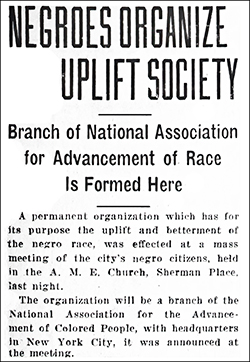 ADVOCACY, ORGANIZATION AND THE NAACP Fred Hazel and Leonard Thomas were active with Binghamton’s first African-American churches. Both were instrumental in establishing educational centers, and both worked for years to organize and advocate for the social, political and financial advancement of this area’s Black community. In 1907, Thomas formed a local branch of the “United Order of True Reformers,” an organization designed to help African-American members with real estate and insurance programs. Fred Hazel formed a fundraising organization known as the “Frederick Douglass Lyceum of Binghamton,” and a few years later organized the “Binghamton Colored Civic League.” When it was announced that a controversial new motion picture, D.W. Griffith’s “The Birth of a Nation,” was scheduled to play in a local theater, Hazel and the Civic League took a stand against it. As Hazel put it, “the movie is a travesty on history, a breeder of racial antipathy magnifying the faults of the colored race, while glorifying the lawlessness of the whites.” It came as no surprise that the movie played, at both the Armory Theater and Stone Opera House, but not without strong objection by Binghamton’s Black community. Hazel’s Civic League also took issue with the local press and their practice of identifying African-Americans by race in their reporting. Finally, in 1919 a meeting was held at AME Zion Church to establish the first local branch of the National Association for the Advancement of Colored People (NAACP). Fred Hazel is credited with founding the chapter and Leonard Thomas served as the first president of the organization, followed by Hazel a few years later. Over the years meetings of the local NAACP were held in churches and various other locations, and in 1928 preparations were made to obtain a permanent home for the organization. Drawing from Hazel’s and Thomas’s experience with trade schools, the new facility would include an employment bureau, sewing classes, cooking classes and a nursery for children of working members. But by the early 1930s, membership in the local NAACP had declined below the point of sustainability and it fell dormant. Finally in 1948 a new generation of civil rights advocates led by Clarence McGill saw a need to re-establish a local organization. That year a new Binghamton chapter of the NAACP was formed – to carry on the work of this community’s early Black leaders.