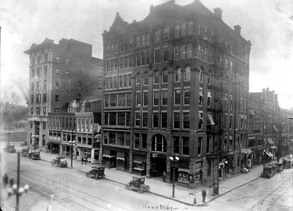 The Ross Building in Binghamton, New York, was designed by Truman I. Lacey and built for local banker and benefactor Erastus Ross in 1889-1890. During construction the New York Architectural Terra-Cotta Company of Long Island, was contracted to supply several architectural features. Seventeen of the terra-cotta features were in the form of the Green Man, an ancient symbol of Renewal, Rebirth and New Life that has appeared in architecture for over a thousand years.